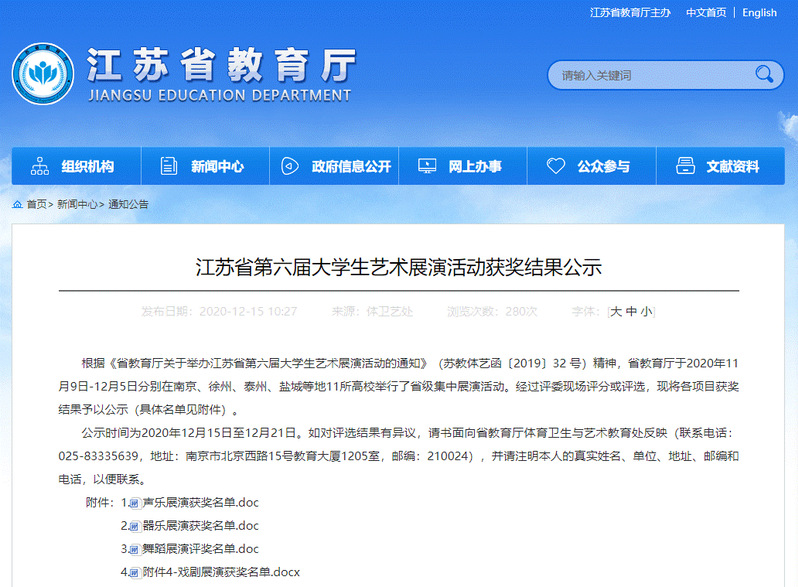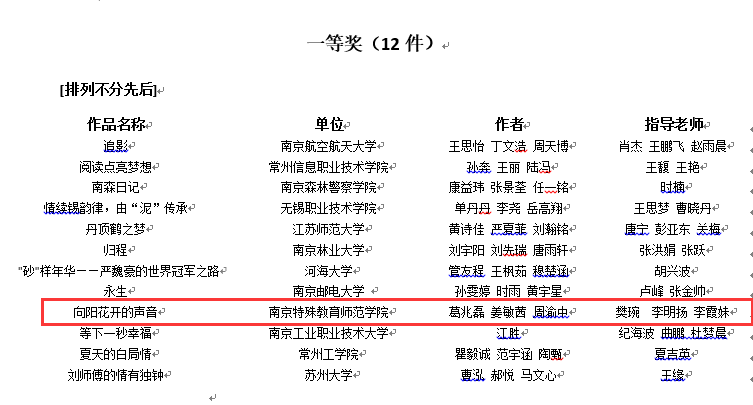 .近日,江苏省教育厅网站公布江苏省第六届老员工艺术展演获奖名单。数信与信息科学公司报送的两部微电影作品《向阳花开的声音》、《新时代的新一天》在一众作品中脱颖而出,分别斩获一等奖、三等奖。