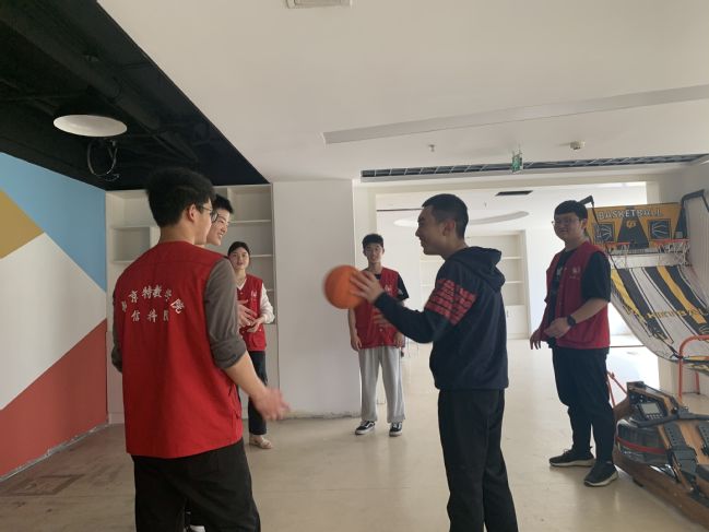 本次活动氛围“用爱合力播种希望” “用互动传递心温暖”两个环节。在第一环节,志愿者们三至四人成一组对应一位服务中心的学员,一同完成各类绿植的栽种,一起种下“爱的种子”。“用互动传递心温暖”环节,志愿者们拉着中心学员一起投篮、传球,通过游戏锻炼学员的专注力,也在此过程中收获协作互动的乐趣。