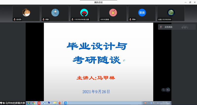 9月26日下午,永利集团3044am邀请淮阴工公司马甲林老师开展线上“计算机专业毕业论文撰写及考研随谈”讲座,本次讲座由副经理张居晓主持,2018级计算机科学与技术(嵌入式培养)专业的员工全程参加讲座。