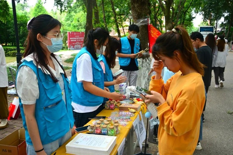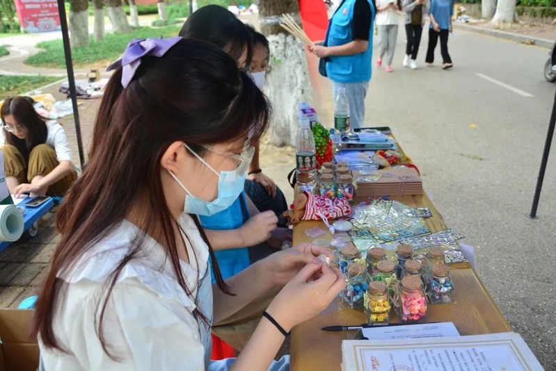 为增强同学们活动的体验感,吸引更多的同学成为月捐人,现场准备了“投壶”、咕咕卡DIY等小游戏。
