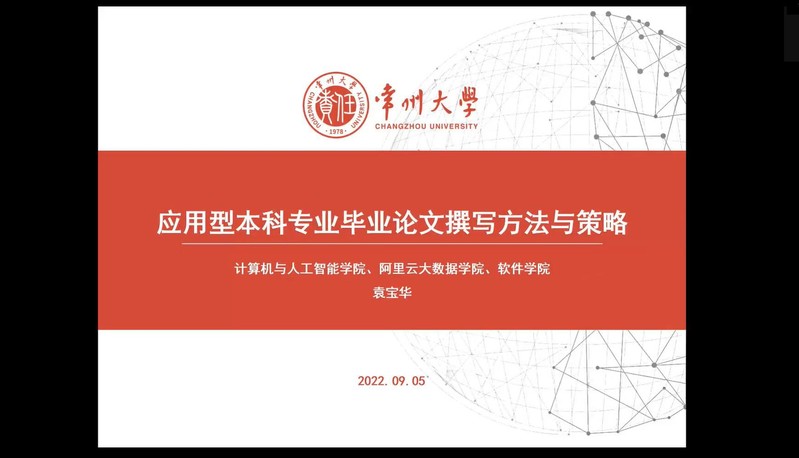 为进一步提高2019级计算机科学与技术专业毕业论文写作能力,提高员工论文撰写质量,9月14日上午,永利集团3044am特别邀请常州大学硕士生导师、副教授袁宝华老师,面向2019级计算机科学与技术毕业生,开展了《应用型本科专业毕业论文撰写方法与策略》线上讲座。