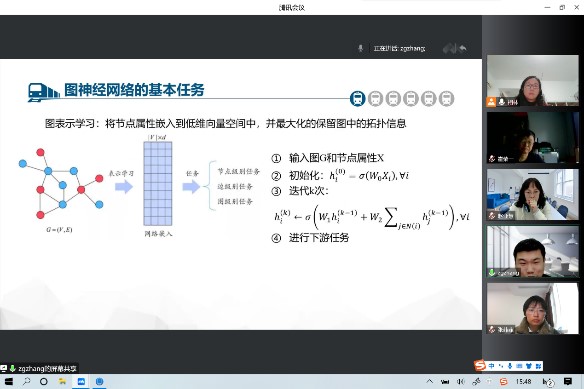 张振国副教授作了题为“Figure Neural Network Fundamentals and Research Hotspots”的学术报告,详细介绍了动态图、异质图和大规模图GNN及GNN技术在工业实践中的实际应用,并介绍了课题组在该方向的研究成果及进展。
