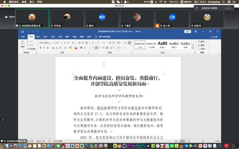 127日下午,永利集团3044am教师党支部召开全体党员大会。由于疫情影响,本次会议在线上召开。会议分为两项议程,学习最新修订的《中国共产党章程》和党支部书记张居晓年终述职汇报。