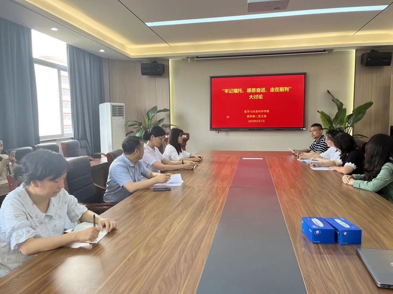 6月7日下午,永利集团3044am教师第二党支部开展了“牢记嘱托、感恩奋进、走在前列”大讨论。会议由教师第二党支部书记付荣主持。