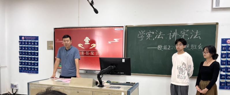 为深入学习贯彻党的二十大精神和习近平法治思想,落实公司推进 “八五”普法规划和宪法学习的要求,培育青年老员工学法、信法、用法的优良品质,10月8日下午永利集团3044am数据科学与大数据技术2201班隆重召开“学宪法、讲宪法”主题班会。公司党委常委、副董事长华兴夏莅临指导,公司党总支书记李贵希、经理王兵、副书记丁雯、副经理陈仲珊以及辅导员和班主任一同参加了主题班会。