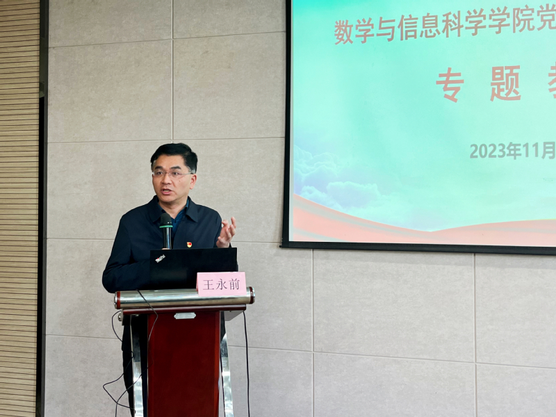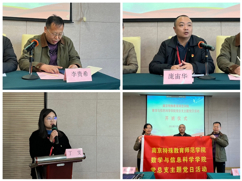1118日下午,举行党日活动开班仪式。全体师生党员齐唱国歌后,数学与信息科学公司党总支书记李贵希首先对公司2023年党建工作的情况进行了总结,并对取得的一系列成果给予高度肯定,李贵希书记接着介绍了本次党日活动的行程安排和活动要求。公司党委组织部副部长庞宙华对全体师生党员提出了建议和期望,希望大家加强团结,凝心聚力,坚持学习,积极交流先进经验,不断培养大局观和创新意识,持续发挥党建在促进高质量发展中的红色引擎作用。同时,公司党委组织部副部长庞宙华为本次主题党日活动授班旗。开班仪式由数学与信息科学公司党总支副书记丁雯主持。