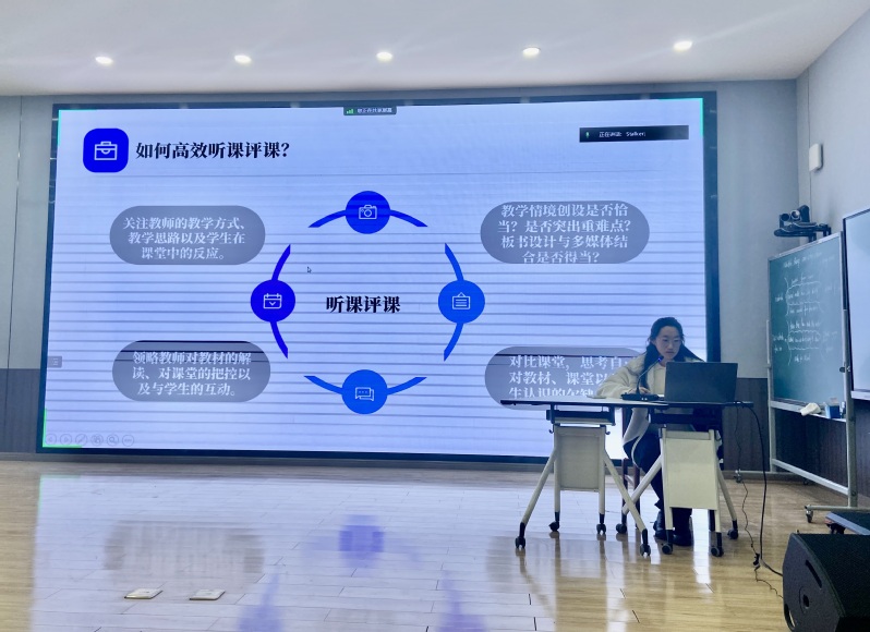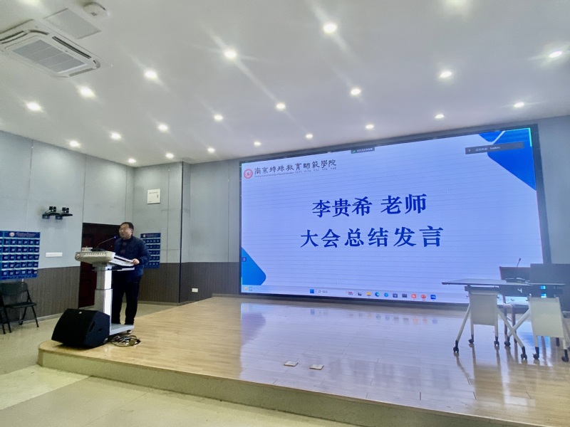 在优秀实习生代表发言环节由2004班曹颖作交流发言,她全面细致地分享了自己在实习期间的诸多收获和感受。从如何钻研教材、分析学情、设计教学、研究板书与多媒体应用备好课,到如何模拟授课、关注学情、师生互动、突出员工主体性上好课,再到如何高效地听课评课以及做好班主任工作,她如数家珍地讲述了实习期间的成长和见闻。她以“纸上得来终觉浅,绝知此事要躬行”的实践指引高质量地完成各项实习工作,并为大家带来一场精彩的分享报告。