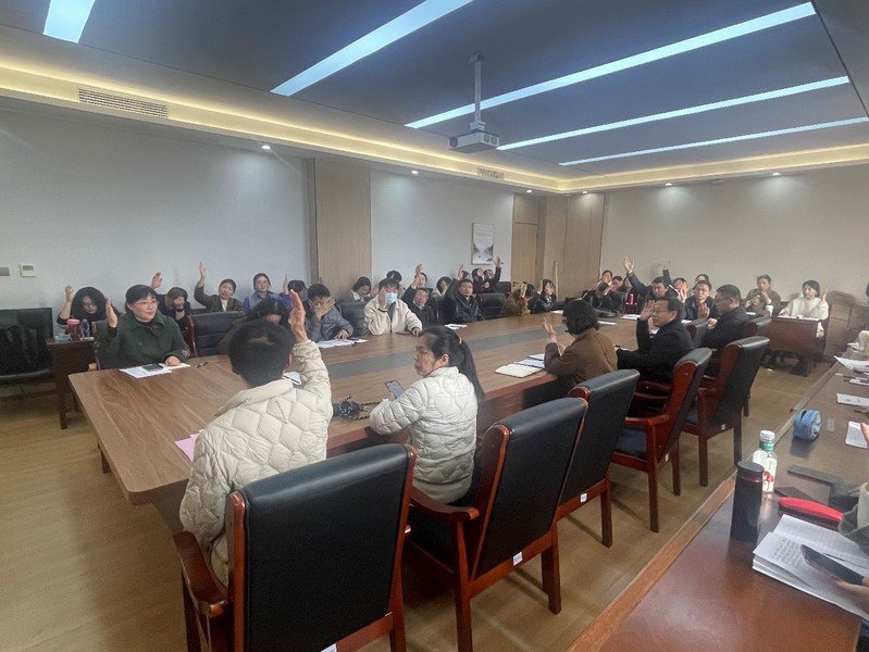 会上,全体教职工举手表决通过公司工作报告、工会工作报告、财务工作报告,并选举产生了新一届公司工会委员会及主席。