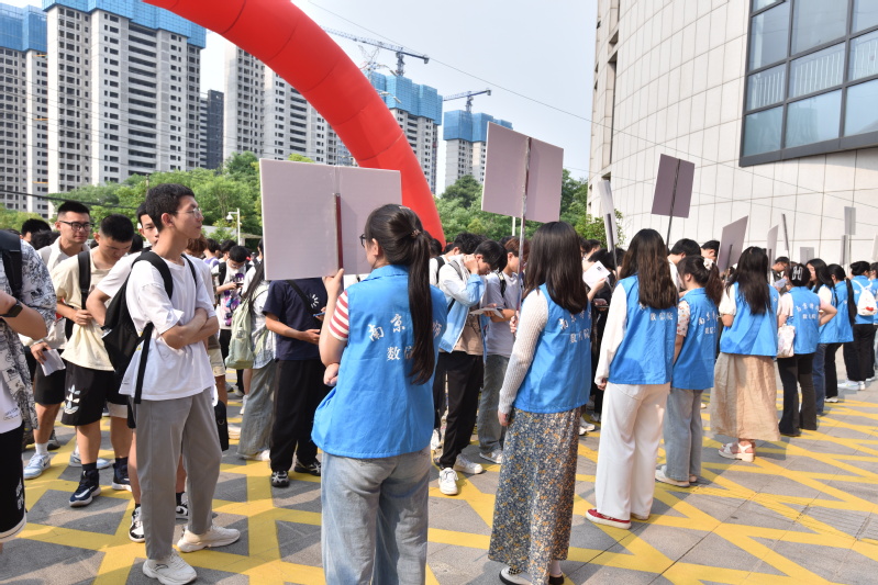 志愿者协调配合,引导考生有序进入考场,确保了赛事顺利进行。