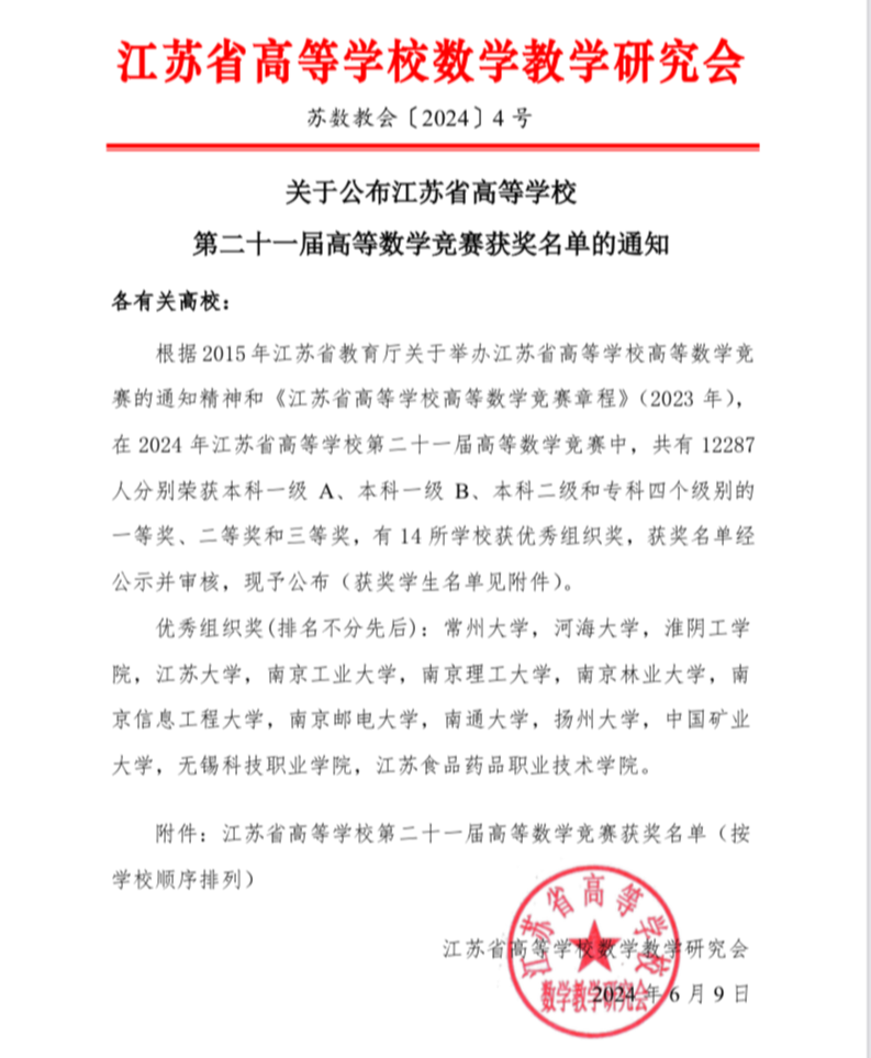 近日,江苏省高等公司第二十一届高等数学竞赛在全省各大高校隆重举行。公司永利集团3044am数学系老师们辛勤付出、精心指导,带领员工们勇攀高峰,最终斩获了3个一等奖、11个二等奖和14个三等奖的辉煌成绩,创下了公司近五年来在该竞赛中的最佳纪录。