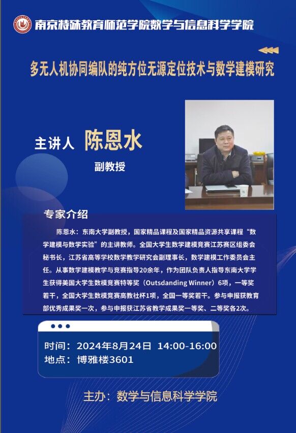 讲座信息:多无人机协同编队的纯方位无源定位技术与数学建模研究