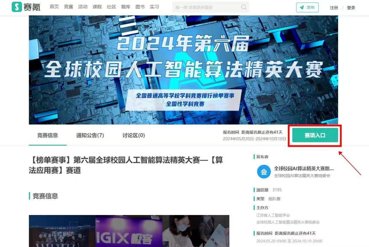 【算法应用赛】赛道的报名可以通过 https://www.saikr.com/vse/50196找到【算法应用赛】的入口(见下图),注册登录,按提示操作完成报名。