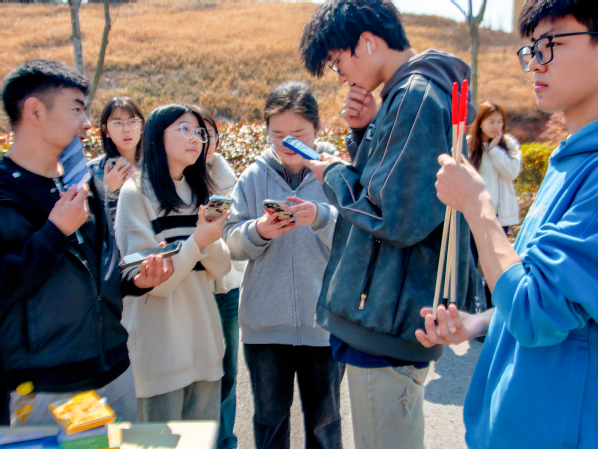 活动还包括投壶的趣味游戏,同学们手持箭矢,专注地瞄准壶口,随着手腕的用力一掷,有的箭矢稳稳的被投入壶中,有的则遗憾的擦边而过,但同学们依旧是兴致勃勃,激动的要再投一次。这不仅是一份独特的乐趣与活动,也成为了春日里一段难忘的回忆。