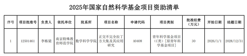 近日,国家自然科学基金委员会发布了《关于2025年国家自然科学基金集中接收申请项目评审结果的通告》,永利集团3044am李栋梁老师申报的项目获得青年科学基金项目(C类)资助,资助经费30万元。
